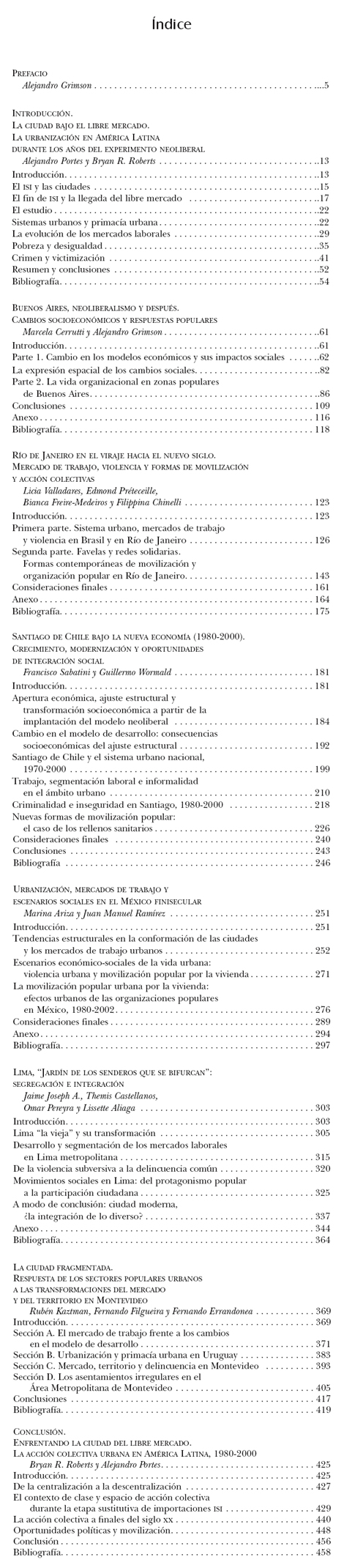 Alejandro Portes, Bryan R. Roberts, Alejandro Grimson (Coord.) (2008), Ciudades latinoamericancas. Un análisis comparativo en el umbral del nuevo siglo, Colección Desarrollo y Migración. México: Miguel Ángel Porrua, Universidad Autónoma de Zacatecas, ISBN 978-970-819-125-8 |