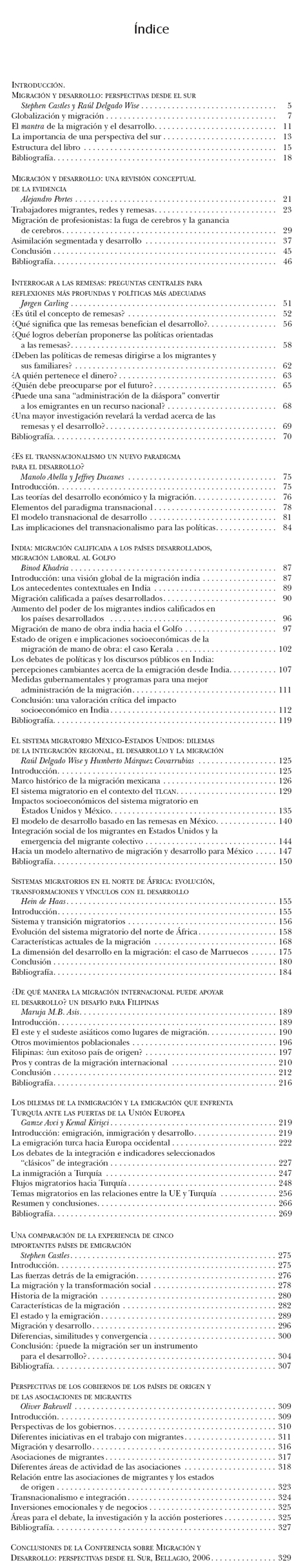 Stephen Castles, Raúl Delgado Wise (Coord.) (2007), Migración desarrollo: y perspectivas desde el sur, Colección Desarrollo y Migración. México: Miguel Ángel Porrua, UAZ, RIMD, SEGOB, INM, CONAPO, IMI, University of Oxford, IOM, ISBN 978-970-819-036-7 |